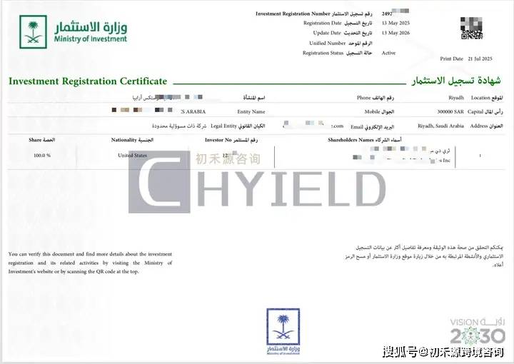 随着沙特“2030愿景”战略的深入实施,沙特政府持续推出吸引外资、改善营商环境与推动经济多元化的新政策,为企业带来前所未有的开放机遇。出海中东已经成为了众多中国企业的选择,近日在初禾源的高效协助下,客户成功完成沙特公司的注册。